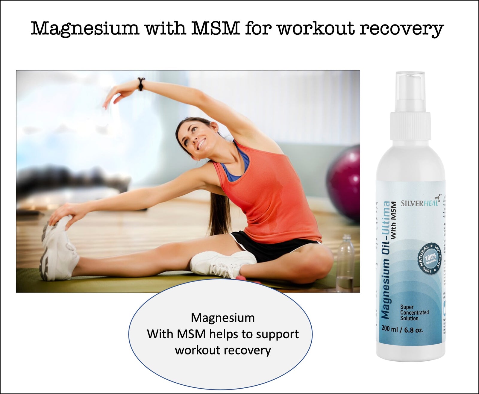Magnesium Oil Ultima with MSM, Joint Support, Workout Recovery, Healthy Tendons, Healthy Muscles, Improves Athletic performance, Sports injury